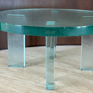 Measuring 85 cm in diameter and 48 mm thick, its bubbles seem to float and dance in timeless suspension.